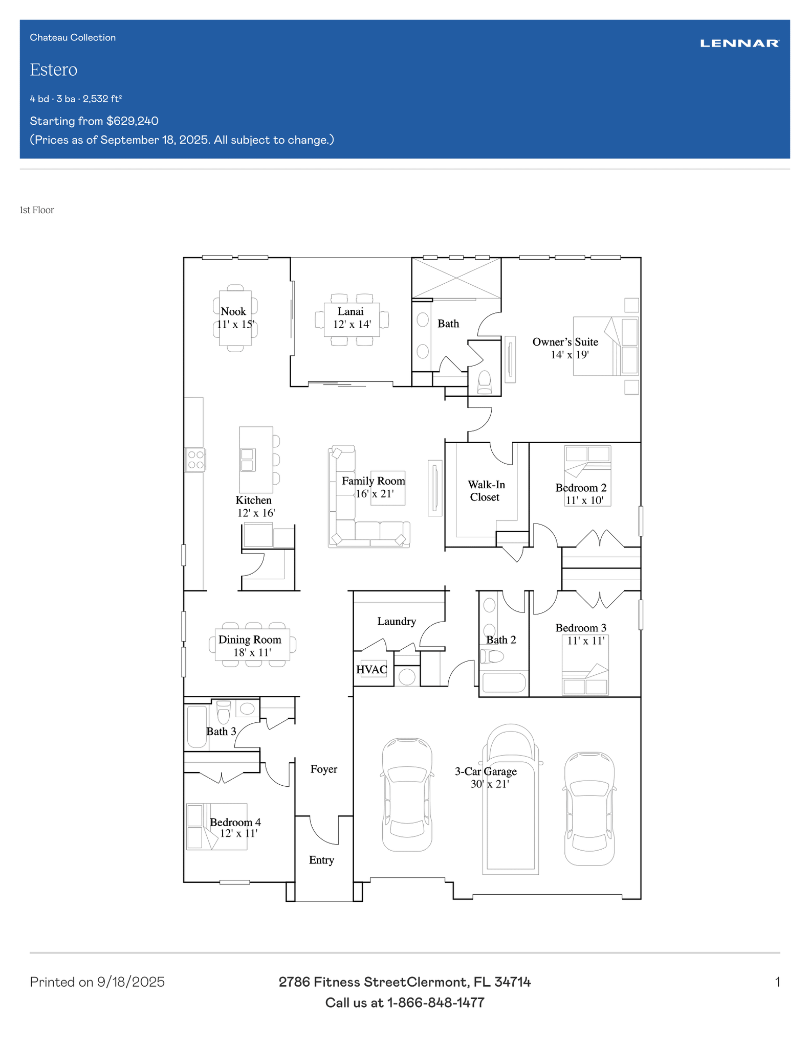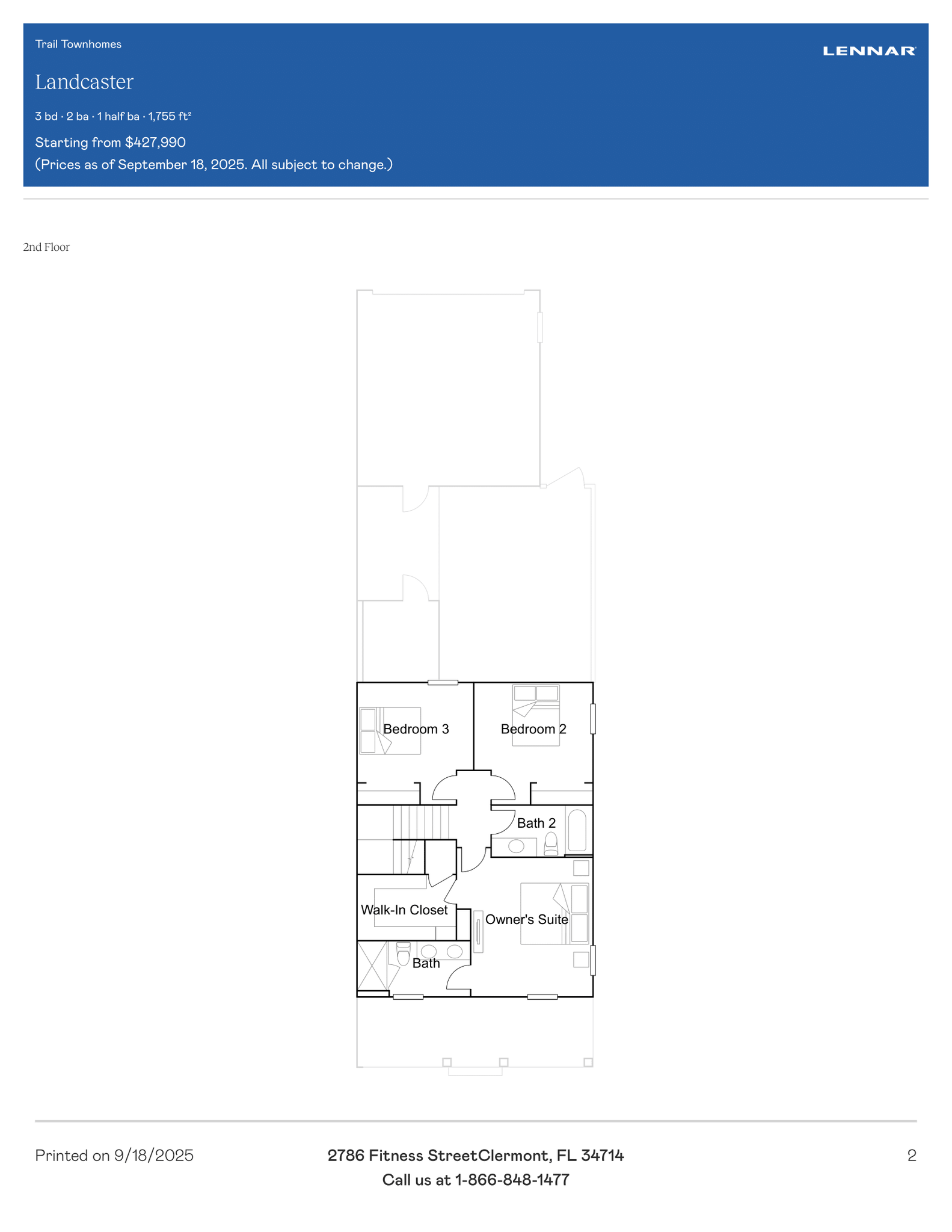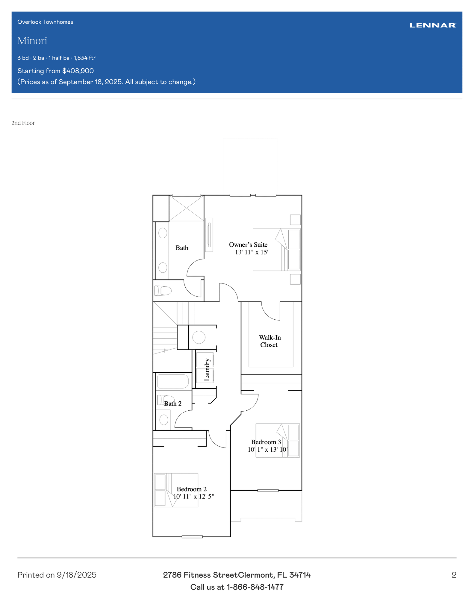 Wellness Ridge in Clermont features Lennar’s latest collection of single-family homes and townhomes with 3 to 5 bedrooms and floorplans around 1,500 to 3,000 square feet. Homes include Lennar’s signature Everything’s Included features, smart-home automation, and modern design finishes. The community centers around wellness-focused amenities like walking trails, a resort-style pool, fitness areas, and green spaces. Its location offers easy access to Winter Garden, Clermont shopping, and major highways.
